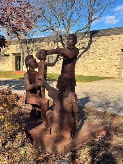 Outside St. Rene Goupil Parish in Sterling Heights, Michigan, a striking statue shows St. René blessing an Iroquois family.