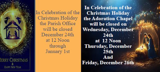 The Adoration Chapel will be closed December 24th at noon through Friday December 26th.